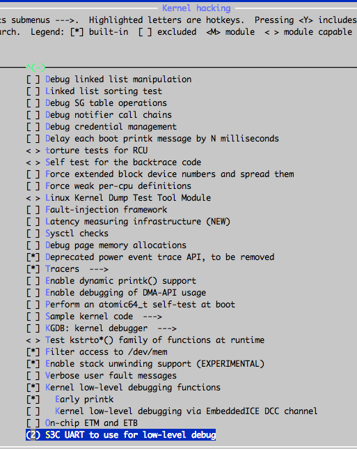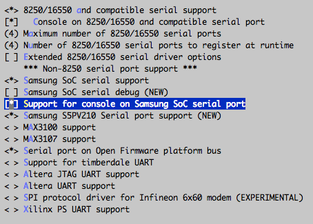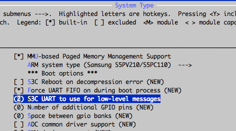 S3C UART to use for low-level messages를 선택하여 숫자를 2로 지정합니다.
